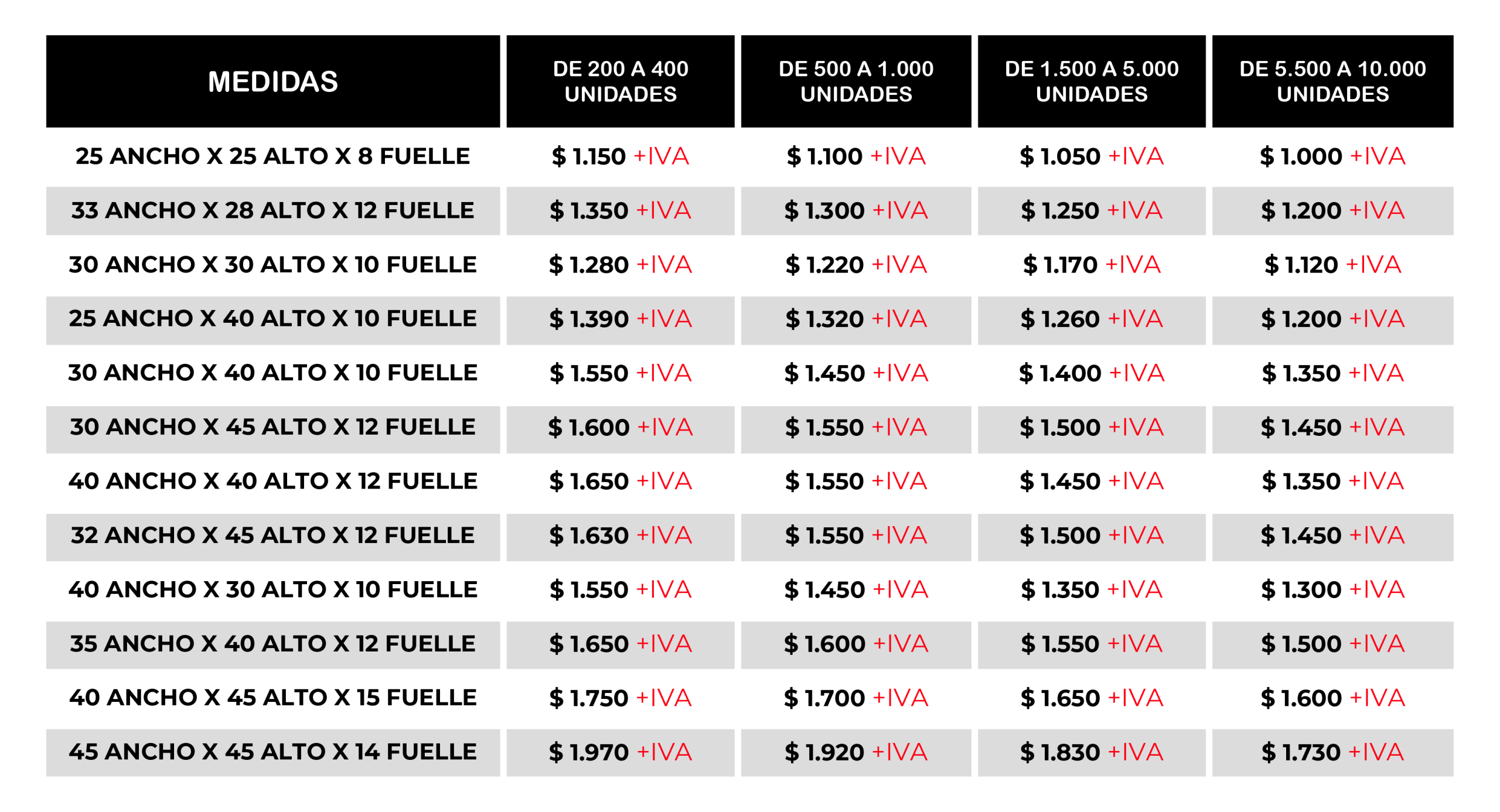 | Colores | ROJO, VERDE MANZANA, NEGRO, NARANJA, VERDE CALI, AZUL OSCURO, AZUL ACUEDUCTO, BLANCO, BEIGE, ROSADO, MARFIL, AZUL REY, LILA, FUCSIA, AZUL BEBÉ, AMARILLO, TURQUESA, VERDE JADE, MORADO, VINO TINTO, GRIS RATÓN, VERDE MILITAR, CAFÉ |