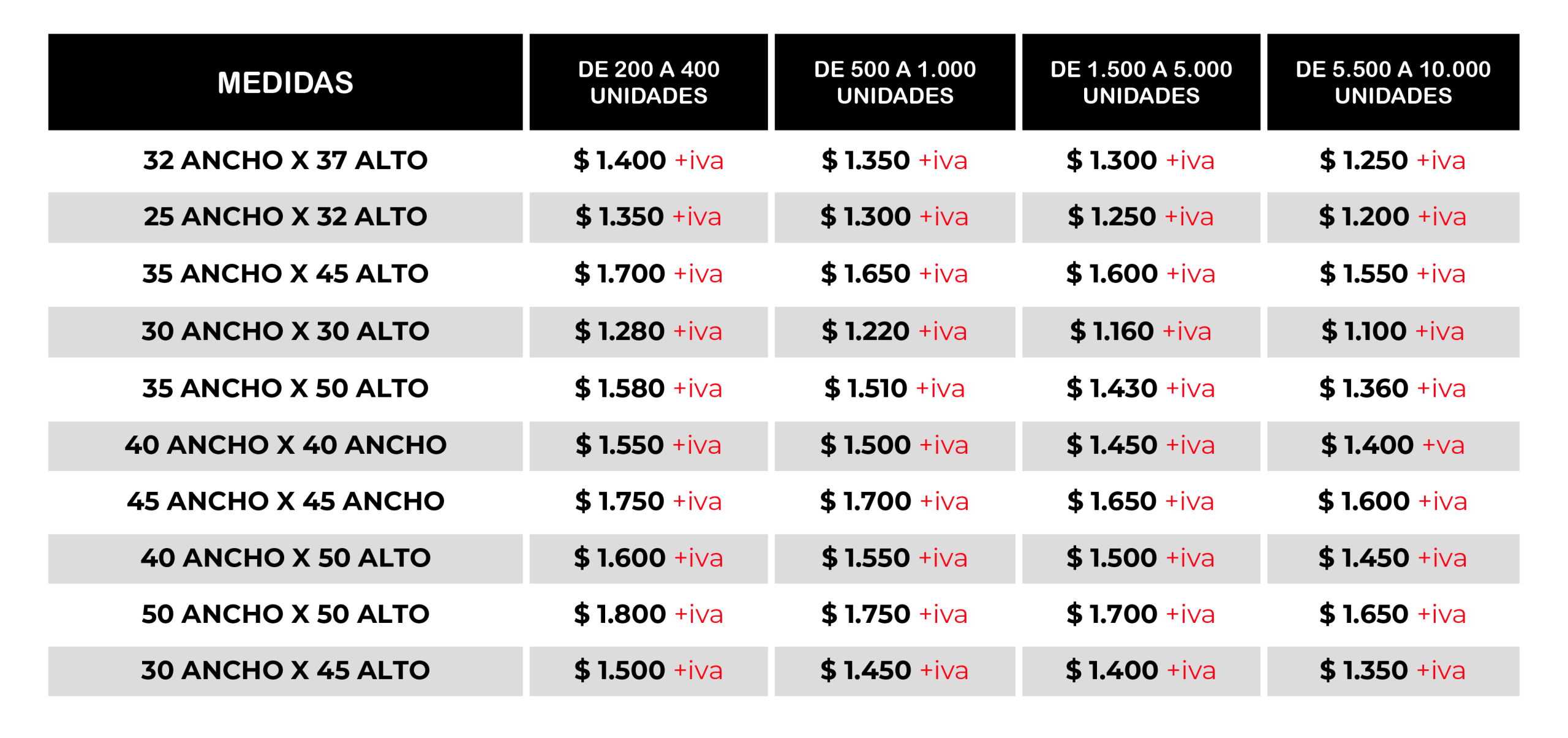 | Colores | ROJO, VERDE MANZANA, NEGRO, NARANJA, VERDE CALI, AZUL OSCURO, AZUL ACUEDUCTO, BLANCO, BEIGE, ROSADO, MARFIL, AZUL REY, LILA, FUCSIA, AZUL BEBÉ, AMARILLO, TURQUESA, VERDE JADE, MORADO, VINO TINTO, GRIS RATÓN, VERDE MILITAR, CAFÉ |